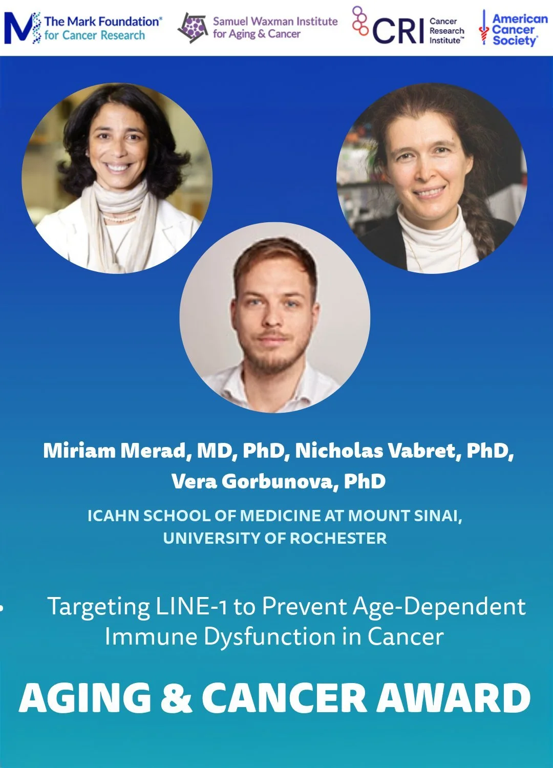 Nicolas Vabret has been awarded the Cancer Research Institute CLIP Investigator Award for the lab’s research on how transposable element -driven inflammation contributes to cancer progression and resistance to immunotherapy, particularly in older individuals